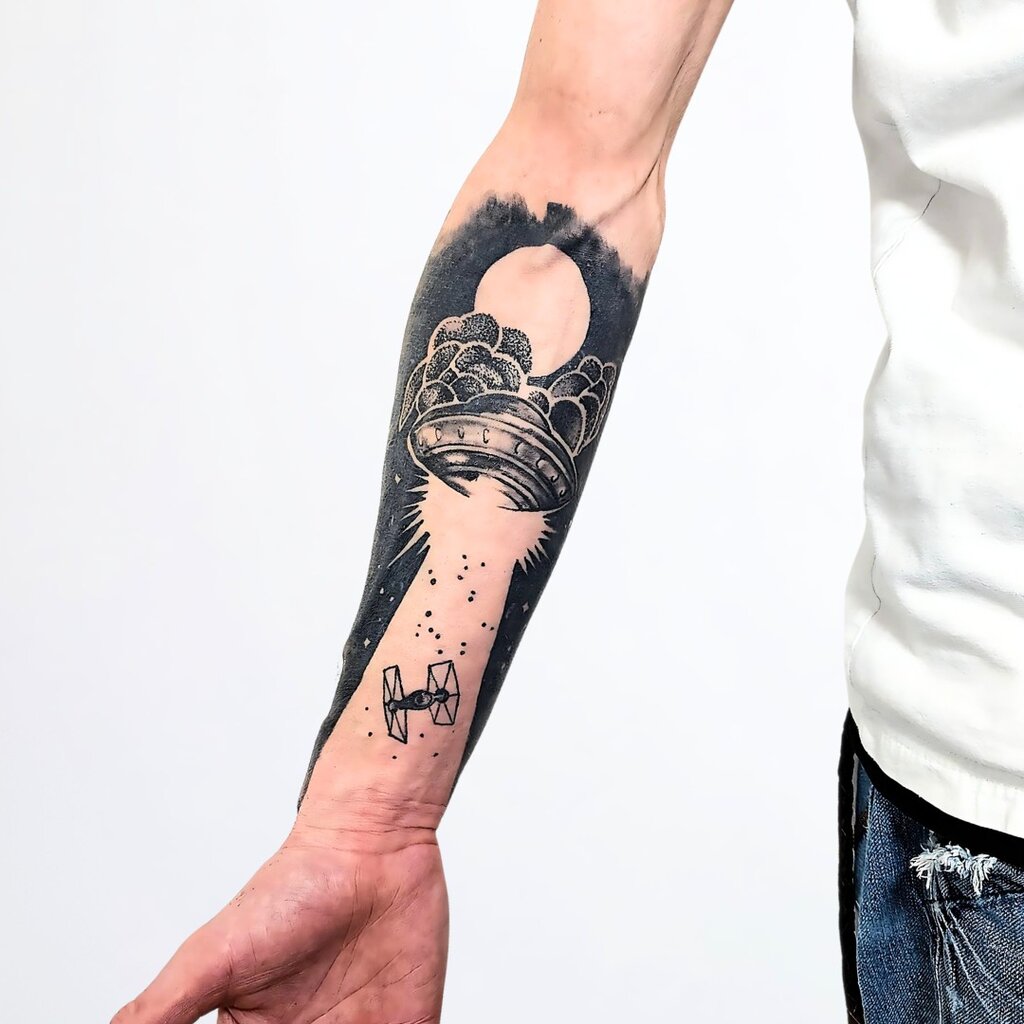 Ja, Blackwork Tattoos lassen sich hervorragend Schritt für Schritt erweitern – z. B. von kleinen Symbolen bis hin zu Sleeves oder ganzen Bodypieces.