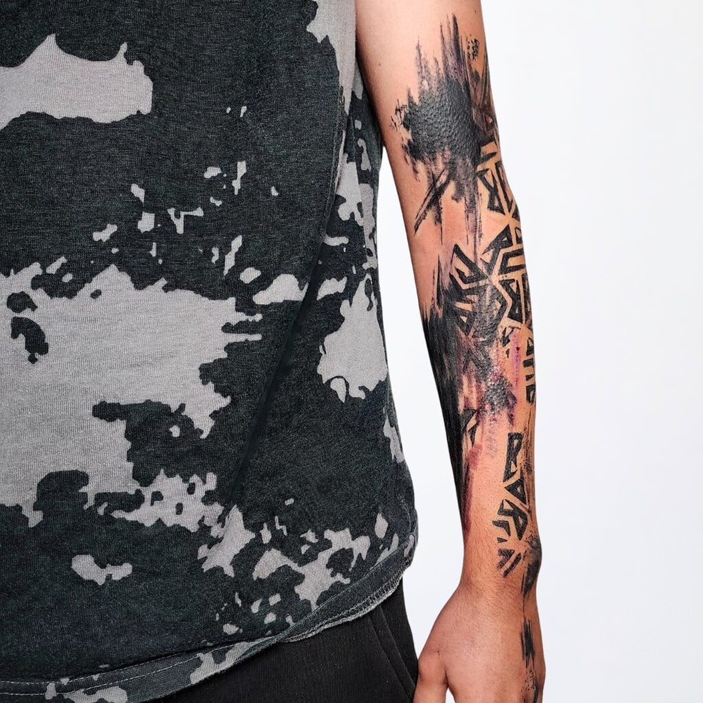 Blackwork Tattoos bestehen aus klaren Linien, starken Kontrasten und Flächen in tiefem Schwarz. In Widnau sind vor allem geometrische Motive, Mandalas und abstrakte Designs beliebt.