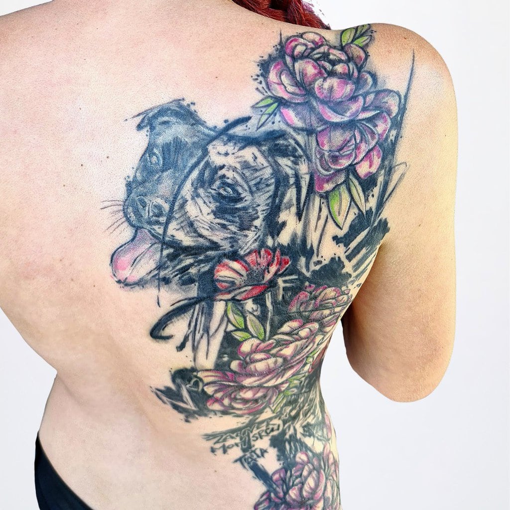 Bei Blackwork werden oft grössere Flächen mit Schwarz gefüllt. Das kann intensiver wirken als feine Linien, ist aber gut auszuhalten. Wir achten darauf, Pausen einzulegen und deine Haut optimal zu schonen.